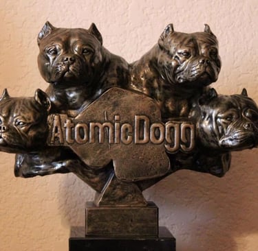 Commissioned by AtomicDogg Magazine, this sculpted mascot trophy became a symbol of prestige within the Bully community. Each year, a new design was created to honor the magazine’s annual Bully mascots — a fresh representation of breed type within the breed.