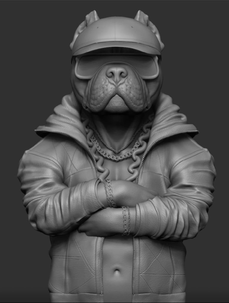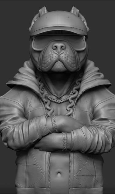 This piece started as an AI-directed concept image, capturing the character’s attitude, style, and energy in visual form. From there, the design was translated into a fully sculpted 3D digital model, built detail by detail to prepare it for 3D printing and physical production.